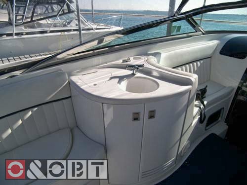 2003 gada Cobalt 360 Expres Cruiser ar iebūvētiem Mercruiser 496 MagB3 375 ZS dzinējiem, Bimini Top, ziemas tents, Admiral zils korpusa krāsojums, automātiska ugunsdzēšanas sistēmas, navigācijas ugunis, benzīna strāvas ģenerators, el.enkurvinča, gaisa kondicionieris, Raymarine GPS/radars, apgaismojuma diodes, teak koka peldēšanas platforma, katrā guļam telpā LCD TV, radara arka ar TV antenu, VHF rācija, salona duša, klāja duša, WC, klāja bārs ar ledusskapi, aprīkota virtuve ar mikroviļņu krāsni, 251 motorstundas, dzinējiem rūpnīcas garantija līdz 2008 g.maijam. Ideālā stāvoklī !!! |